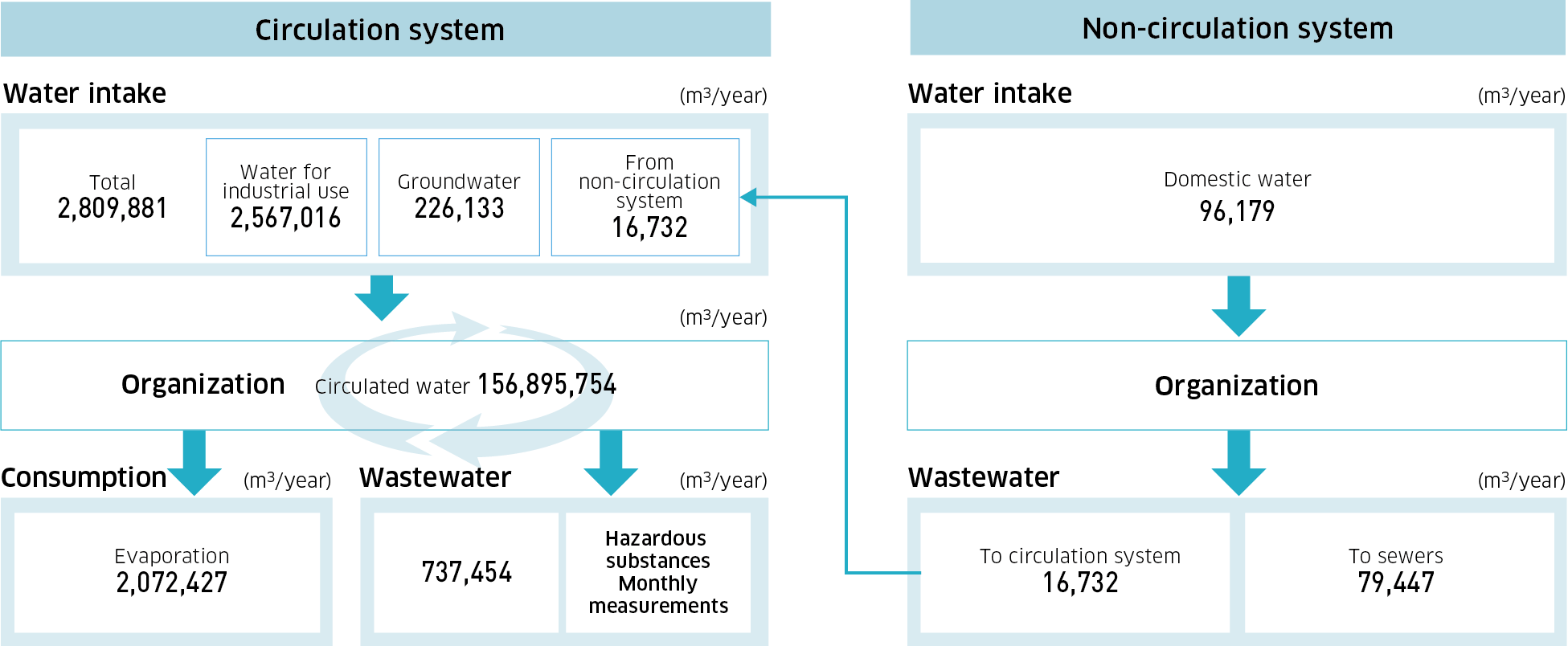 The water accounting of Kyoei Steel Ltd. (non-consolidated) in FY2025 is as described below.