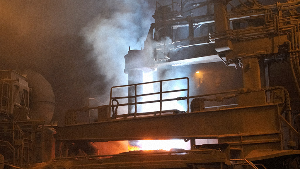 数千度にもおよぶ電気炉のアーク熱を利用して、