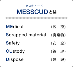 人体に危害を及ぼすおそれのある注射針・検査器材・薬剤容器などは金属製容器に密封するなど、「メスキュード」のシステムはこの規制に合致。