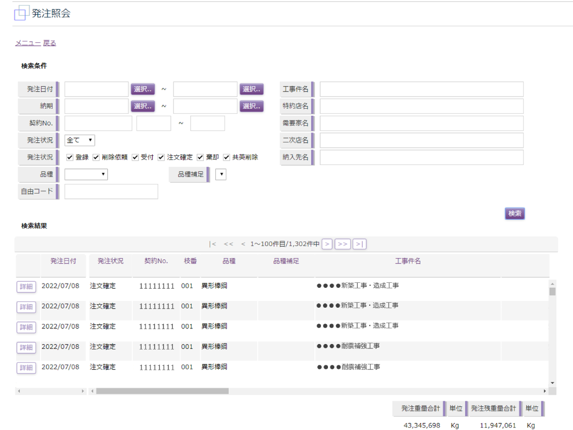 「テツクル」に限らず、すべての方法で発注いただいた情報の照会が可能です。